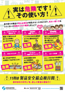 経済産業省では、11月を「製品安全総点検月間」とし、製品を安全に使用いただくため、安全点検の呼びかけやイベントの実施など様々な取り組みを行っています。